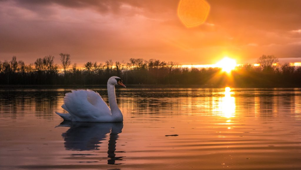 Schwäne sind so schöne Tiere! Bei diesen Bildern kam auch noch ein genialer Sonnenuntergang dazu. Fotografenglück pur! Und der Aufnahmeort passt auch: ein Schwan in Schwanau!