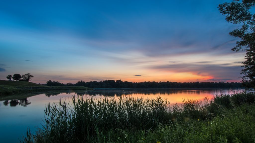 Sonnenuntergang am Rhein bei Schwanau-Nonnenweier mit schön weichgezeichneten Wolken und kräftigen Farben dank Langzeitbelichtung mit Graufilter. Solche Farbspiele am Himmel sind genau nach meinem Geschmack…. und die Schnaken fanden die lange Belichtungszeit auch ganz gut….