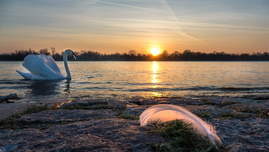 Dieser Schwan am Rhein bei Schwanau-Nonnenweier hat wohl den Frühjahrsputz schon hinter sich gebracht und einige alte Federn entsorgt.