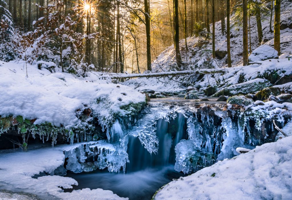 Das frostige Winterwetter hat auch schöne Seiten: Aus kleinen Bachläufen werden faszinierende Eiswelten, so wie hier im Bleichtal.