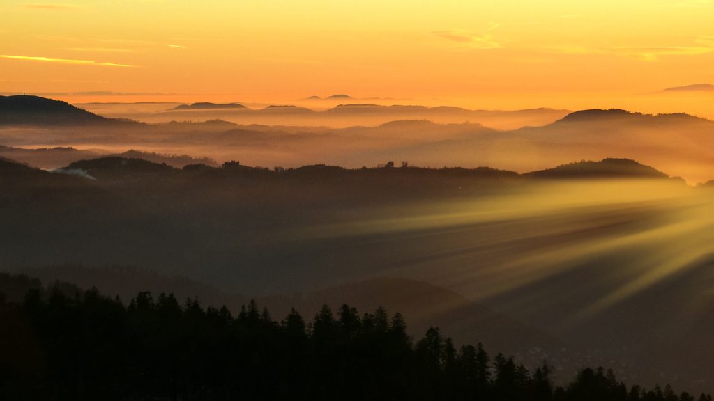 Geniales Herbstlicht und ein fantastischer Blick von der Hornisgrinde über den Nordschwarzwald und die Oberrheinebene.