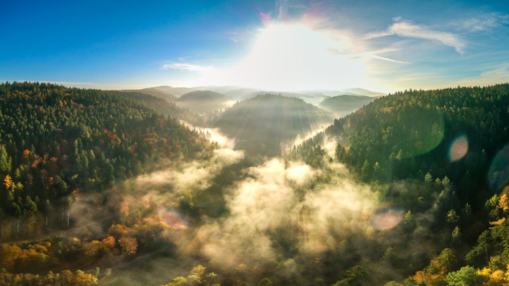 Die Natur in unserer Heimat geht zum bunten Finale über. Die Wälder leuchten in allen Farben und Nebelschleier erzeugen eine mystische Stimmung, so wie hier am Brennersteig im Renchtal.