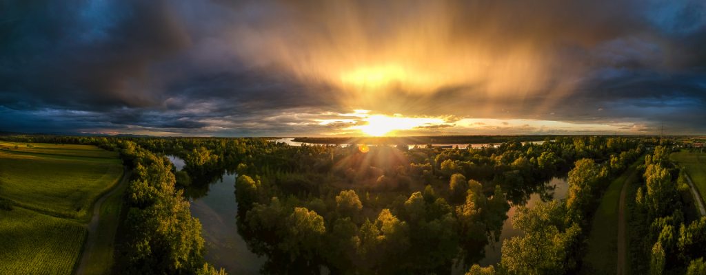 Sonnenuntergang am Oberrhein bei Schwanau-Wittenweier. Die Bilder wurden aus der Luft mit dem DJI Spark aufgenommen und bestehen aus jeweils insgesamt 21 Einzelaufnahmen. Die Bildbreite beträgt über 12.000 Pixel! Ich muss sagen, dass die automatische…