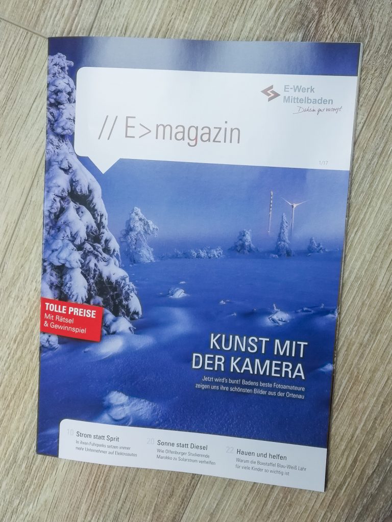 Schon gesehen: Kunst mit der Kamera! Im neuen E-Werk Magazin ist ein toller Bericht über “einige der besten Fotografen Badens”. Hubert Grimmig, Fabian Müller und ich durften dafür Bilder zur Verfügung stellen und über unser…