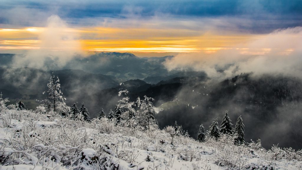 Endlich Schnee! Auf dem Geisberg bei Schweighausen war das Wetter heute ziemlich verrückt: innerhalb weniger Minuten gab es blauen Himmel und Sonnenschein und dann dunkle Wolken und Schneegestöber.