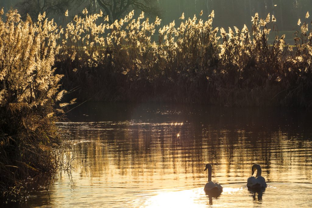 Diese beiden Höckerschwäne habe ich heute am Mühlgraben bei Schwanau-Nonnenweier entdeckt. Die tief stehende Wintersonne hat ein schönes Motiv daraus gemacht.