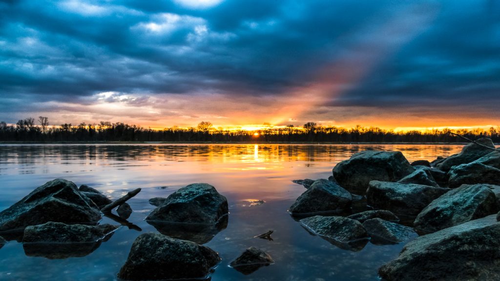Sonnenuntergang am Rheinufer bei Schwanau-Nonnenweier.