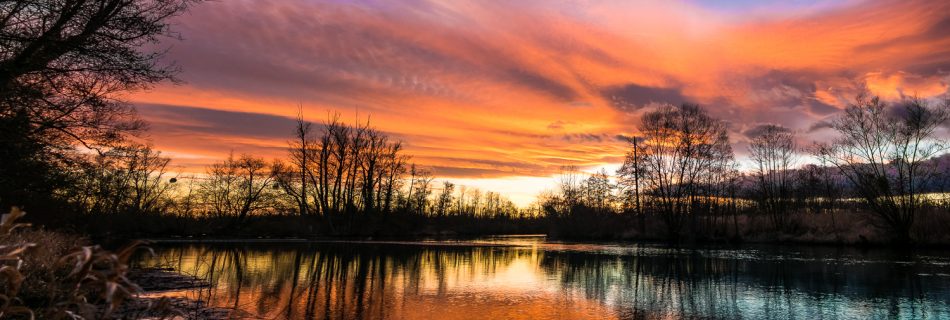 Der heutige Tag war leider grau in grau und nur wenig fototauglich. Aber gegen Abend ist die graue Wolkendecke von Westen her aufgerissen. Also Kamera eingepackt und an den Altrhein gegangen, in der Hoffnung doch noch gutes Fotolicht zu bekommen. Es hat sich gelohnt: An der Elz bei Schwanau-Wittenweier konnte ich diesen Sonnenuntergang fotografieren.